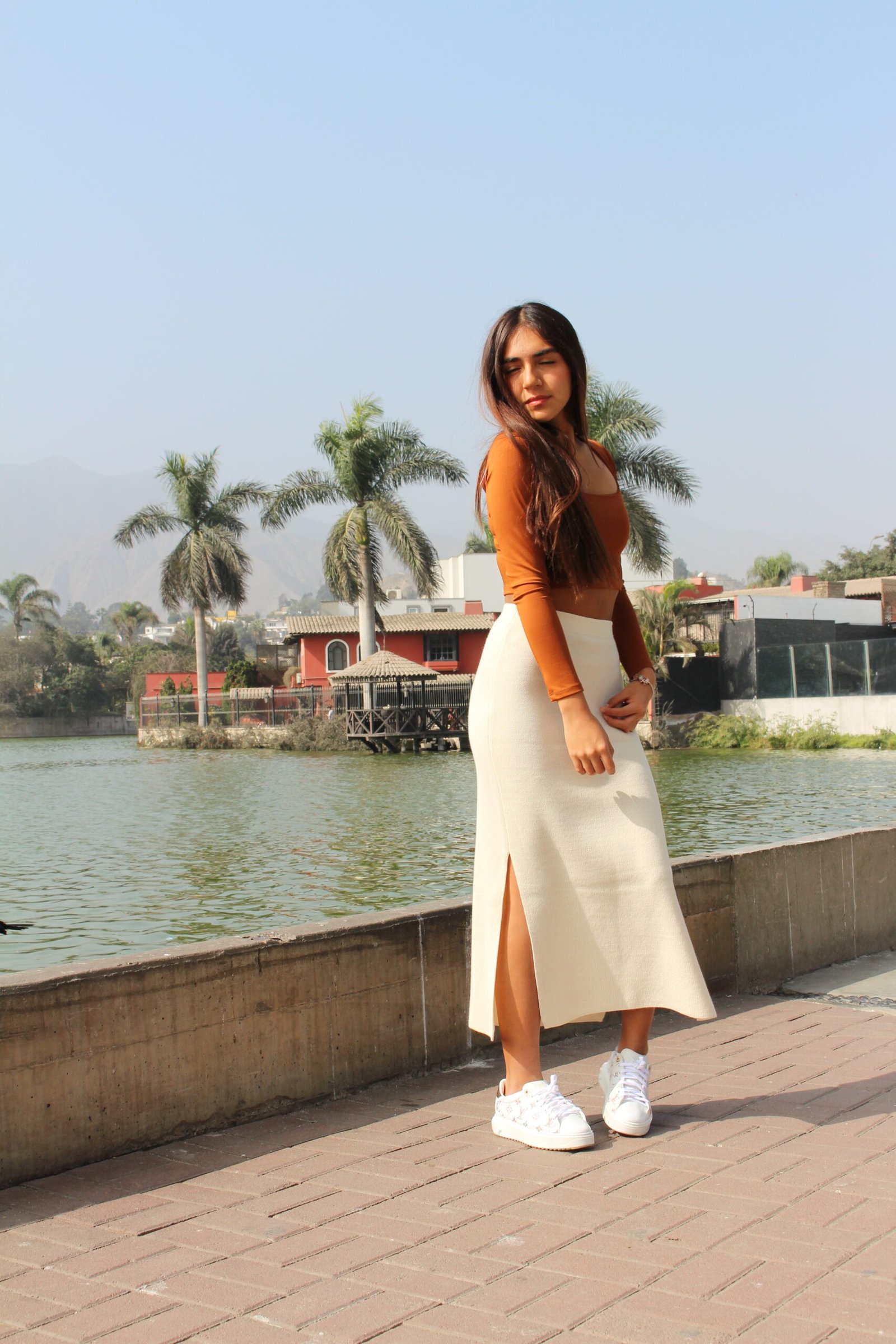 Falda con abertura lateral, moderna y favorecedora. Perfecta para elevar tus looks con un toque sutil pero atrevido.