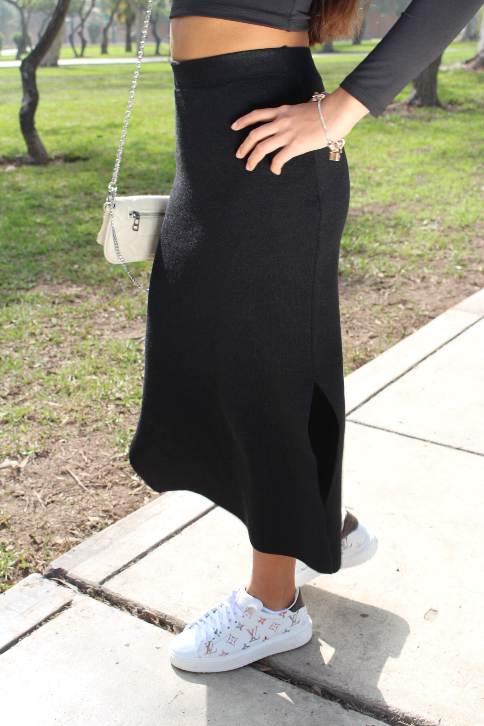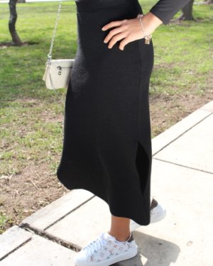 Falda con abertura lateral, moderna y favorecedora. Perfecta para elevar tus looks con un toque sutil pero atrevido.