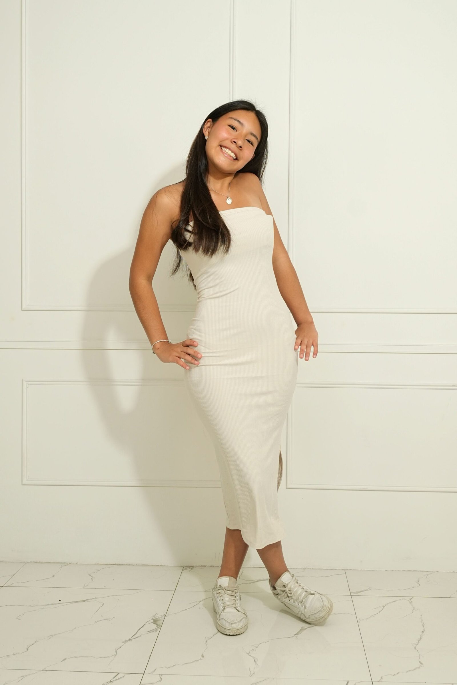 Delicado y elegante como tú ✨🤍. Este vestido color perla entero es la prenda ideal para un look fresco y femenino. Su tono suave lo convierte en un básico versátil, fácil de combinar tanto con accesorios minimalistas como con toques de color que resalten tu estilo. Perfecto para cualquier ocasión, desde un día casual hasta una salida especial. 👗🌸